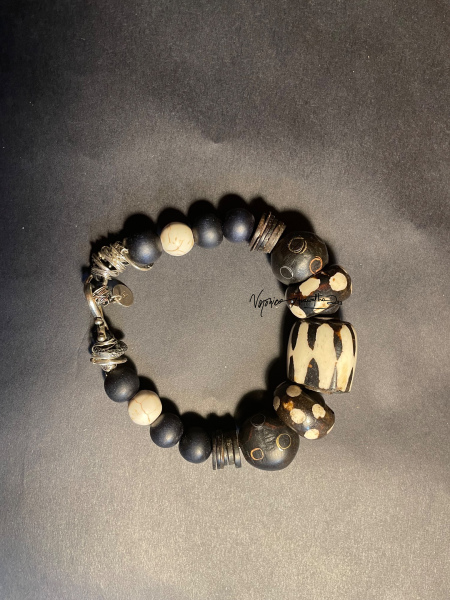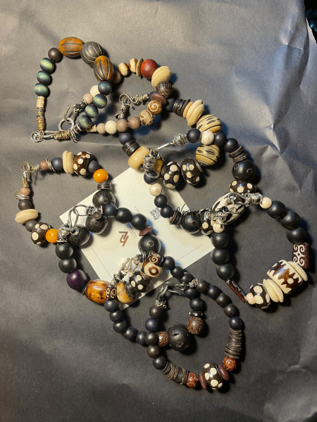 Hand assymboled African beads using wood bone metal leather and silver